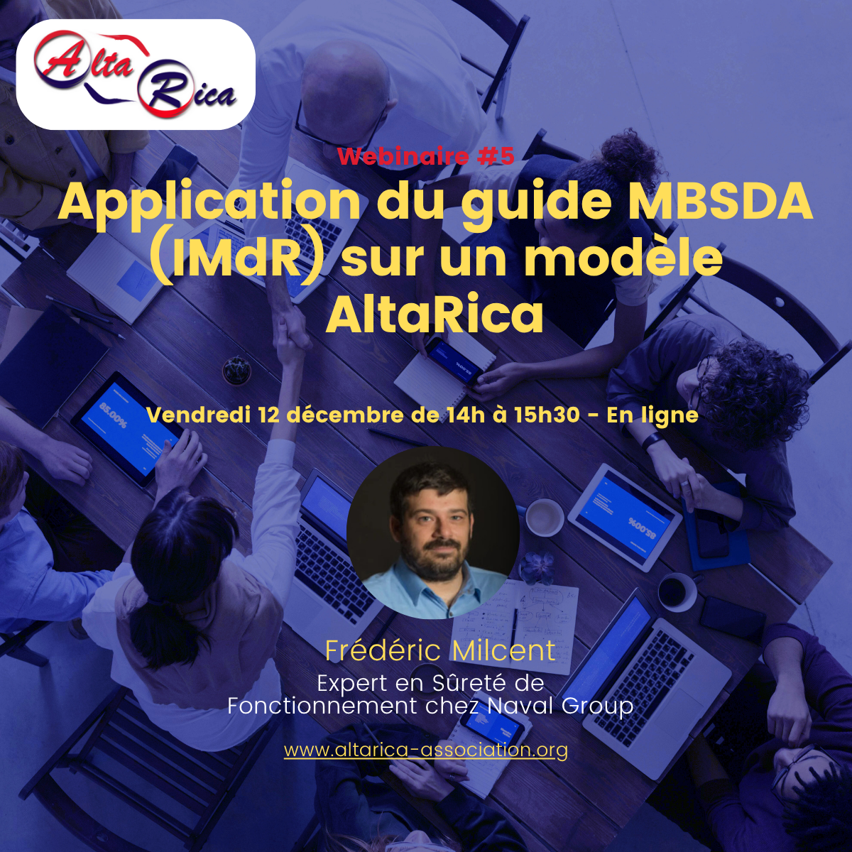 Ce webinaire fera un tour d'horizon de la plateforme AltaRica 3.0 Workshop. AltaRica 3.0 Workshop est la plateforme MBSA. Basée sur AltaRica 3.0, la troisième version du langage de modélisation "haut-niveau" AltaRica, elle permet de réaliser des études de sûreté de fonctionnement de systèmes complexes. Maintenue par l'Association AltaRica, elle est disponible en libre téléchargement sur son site.